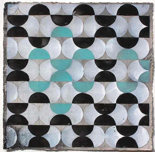 Back in the studio, after coding a mass of travel drawings, I began reconstructing the different groups of patterns using graph paper, compass and ruler to grasp the logic and specific geometric rules. In the translation of these hard-edged geometries and tessellations, gesture, materiality and maintenance of a dynamic figure-ground relationship was emphasised. Surfaces exist as analytical and sensory, engaging with abstraction as a historical genre and unconsciously to the principles of Islamic design.