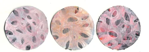 My new work continues to explore pattern and repetition of internal and external forms sourced from nature. I am more interested in an intuitive, process based approach that is now moving away from the politics of representation to be drawn to a hidden and alchemic order. The works are grounded in historical painting technique, employing layering to explore changing surface configurations and optical colour interaction, with motifs embedded and suspended in the viscosity of the paint.