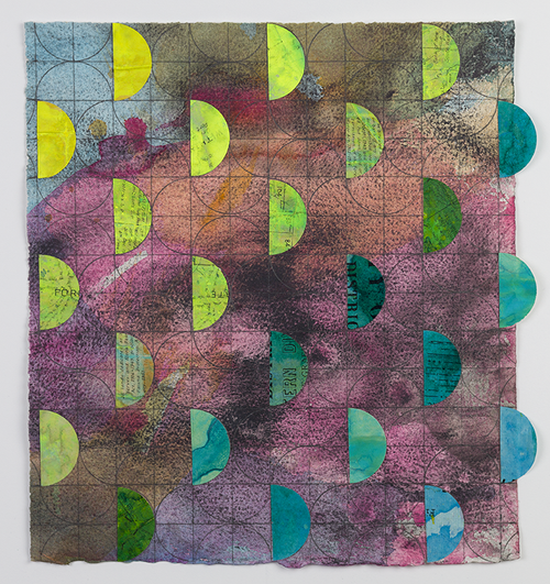 India ink, pigmented Ink, graphite, collaged found paper and polymer gesso on cotton rag paper